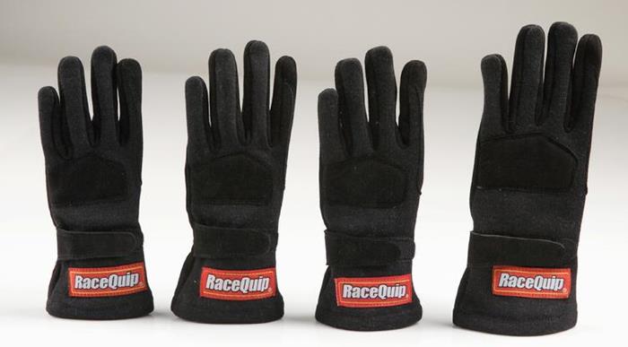 RACEQUIP 355 GLOVES ARE STITCHED WITH A DOUBLE LAYER OF SOFT NOMEX FOR A PROTECTIVE, SOFT FEEL. THESE GLOVES FEATURE HIGH-GRIP BLACK SUEDE REINFORCED LEATHER PALMS THAT GIVE THESE 355 GLOVES A UNIQUE LOOK AND FEEL FROM THE REST. SFI-5 RATED 355 GLOVES SPORT KNUCKLE PADS AND PALM REINFORCEMENTS TO PROVIDE CUSHIONED PROTECTION AND FLEXIBILITY. THE HIGH-WEAR AREA FROM THE TIP OF THE INDEX FINGER TO THE END OF THE THUMB HAS EXTRA LEATHER ADDED. THESE 355 GLOVES HAVE A STANDARD-LENGTH GAUNTLET WITH AN ADJUSTABLE HOOK AND LOOP CLOSURE ON THE BACK TO ENSURE A PROPER FIT.
